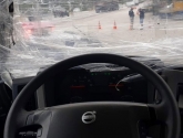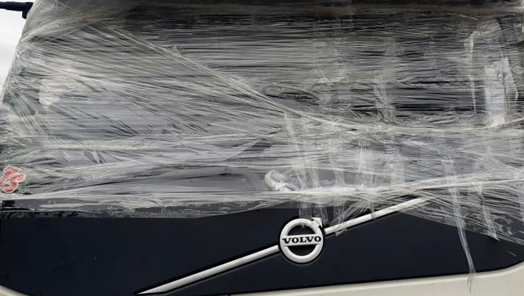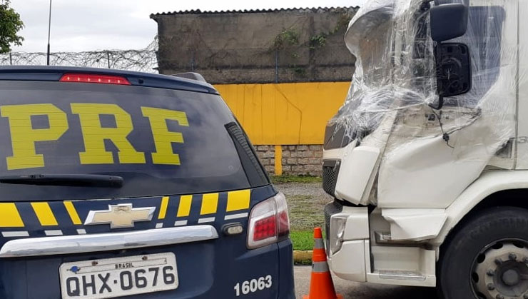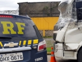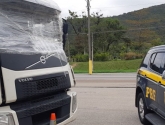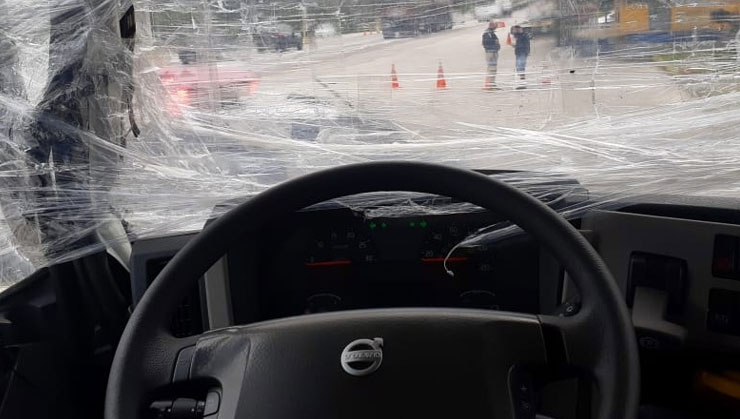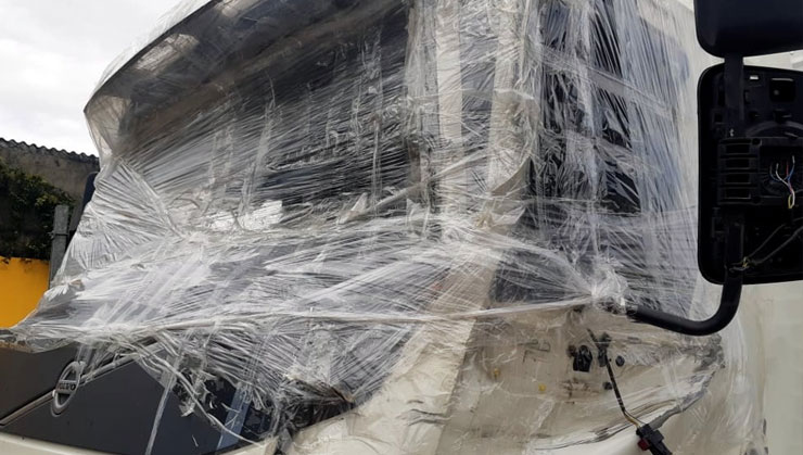 Na manhã desta quinta-feira (07), durante fiscalização de rotina na BR 101 em Biguaçu, policiais rodoviários federais flagraram um caminhão Volvo com plástico no lugar do para-brisa.