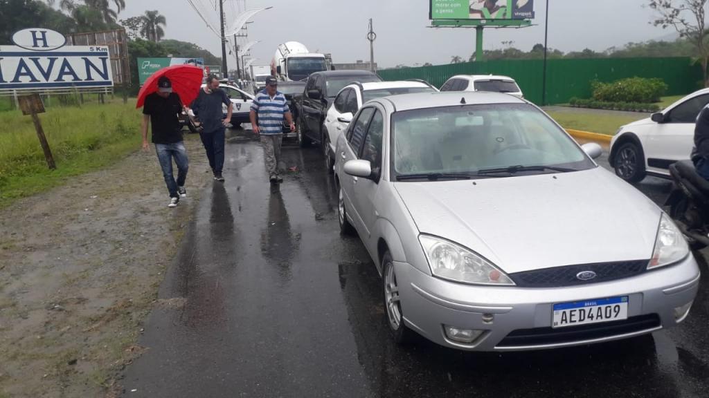Com o grande número de automóveis na via, o transito estava lento e um dos condutores, em um momento de distração, junto a pista molhada, somam uma combinação de fatores que podem ter contribuído para o acidente.