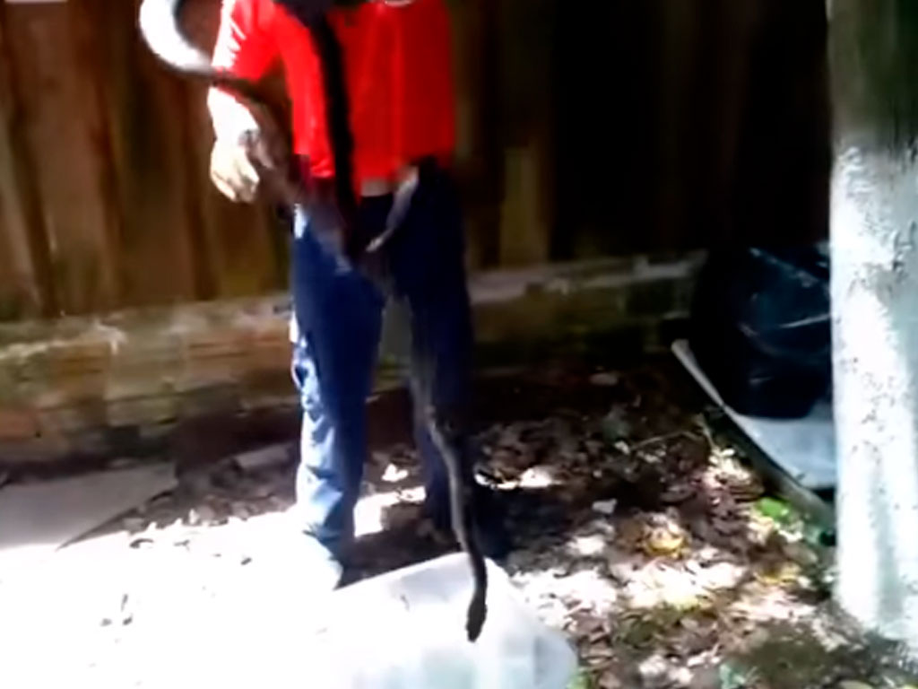 Os socorristas não tiveram nenhum incidente ao retirarem o réptil. Ele foi colocado em uma caixa e solto em ambiente seguro.