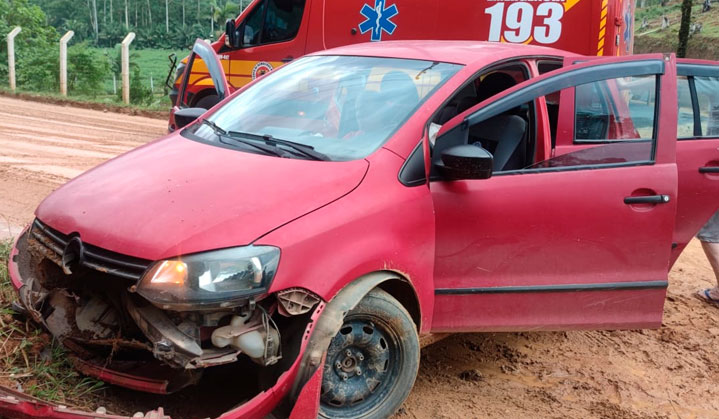 O motorista de um VW/Fox, se envolveu em um acidente de trânsito na tarde desta quarta-feira (22), em Canelinha. Ele colidiu contra um barranco na rua geral, do Bairro Moura, por volta das 17h, após perder o controle da direção.