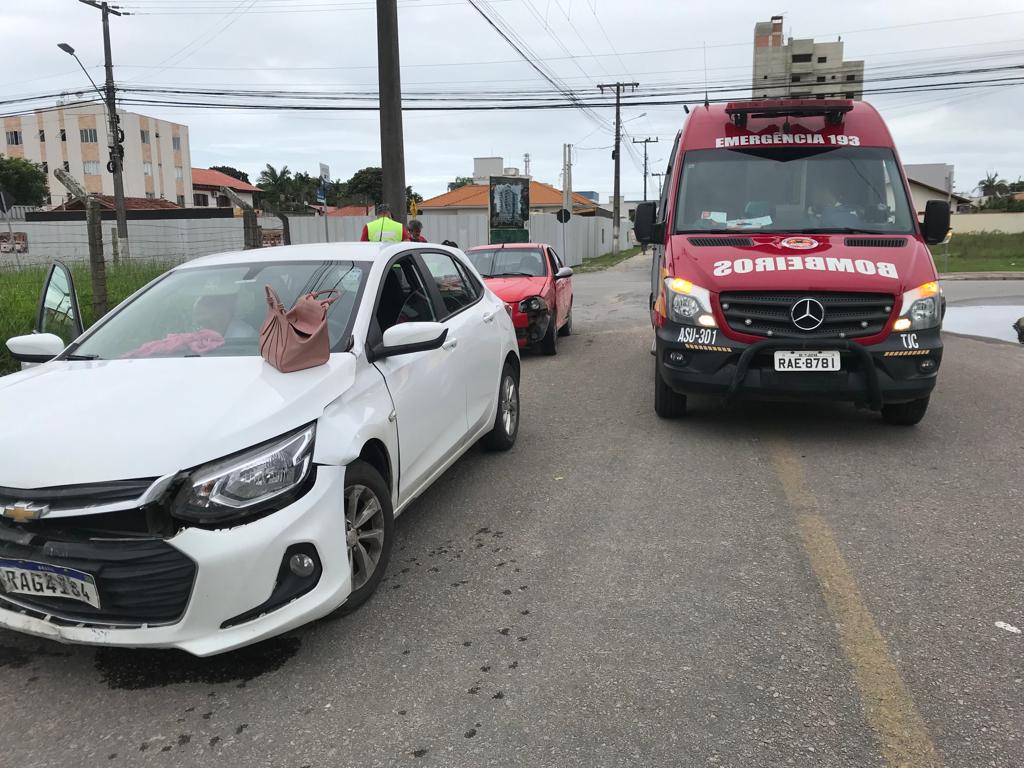 Uma mulher teve ser socorrida por uma equipe do Corpo de Bombeiros após uma colisão entre dois automóveis. O acidente ocorreu por volta das 14h40min do último sábado (02), no cruzamento da rua Antônio Bayer com a rua Minervino Miguel Ferreira, no centro de Tijucas.
