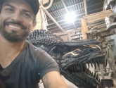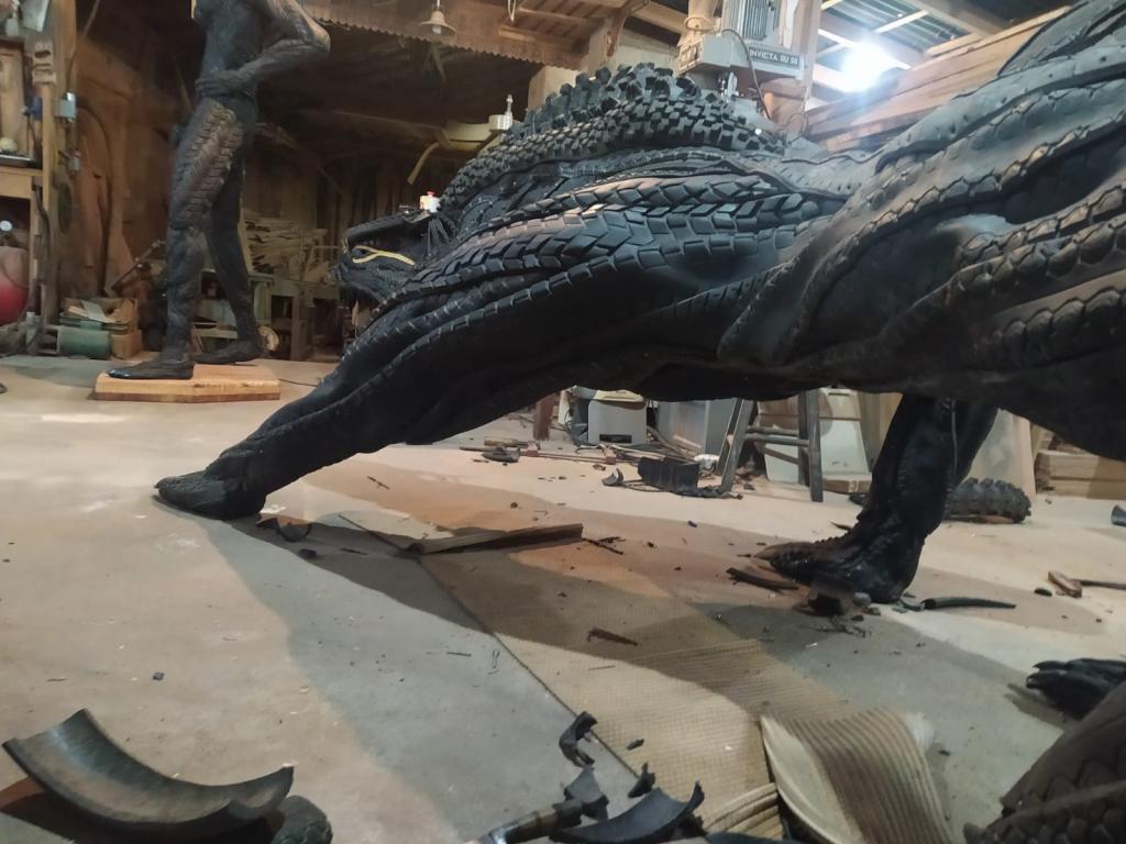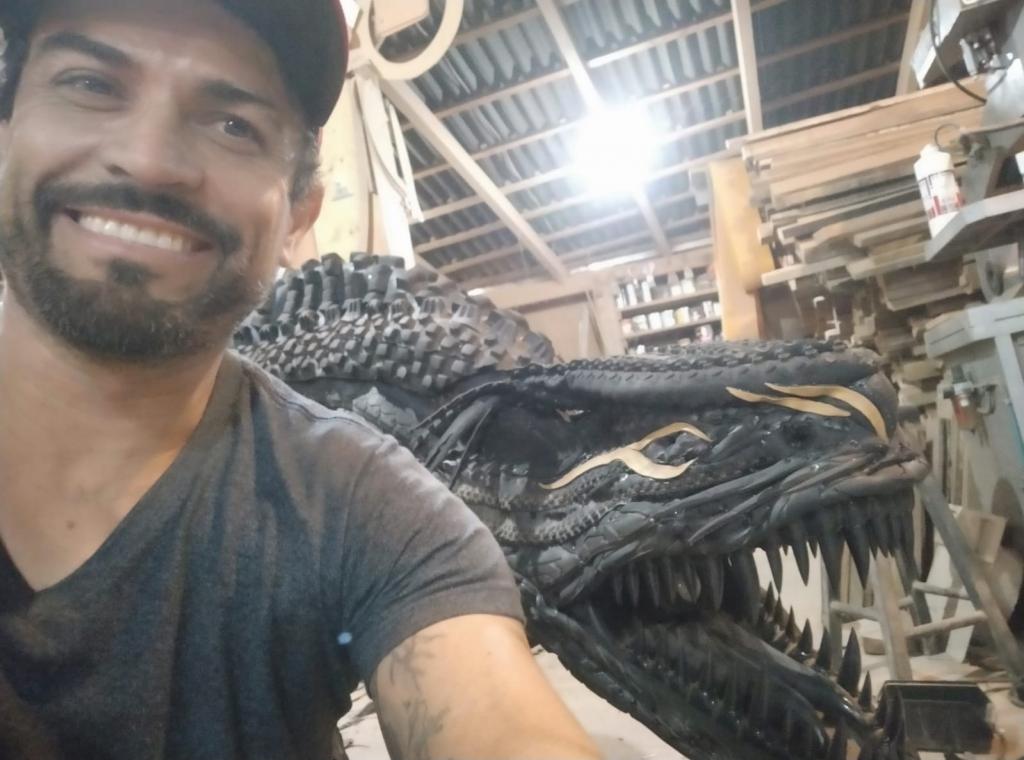 Para construir suas obras de arte Rafael Zaca utilizou cerca de 80 pneus, madeira de demolição e ferro de construção. Suas esculturas são um verdadeiro espetáculo por onde ficam expostas.