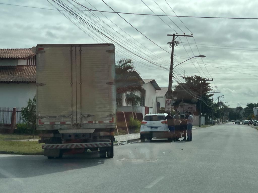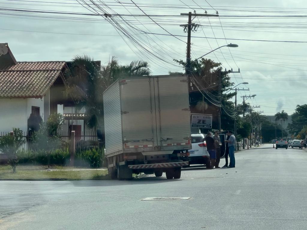 Uma colisão entre um automóvel e um caminhão foi registrada na manhã desta quarta-feira (08) em Tijucas. A batida aconteceu por volta das 11h20min, no cruzamento da rua Atanásio Bernardes com a rua Ademar Carvalho, na região central da cidade.