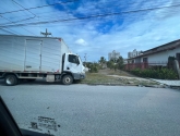 Por sorte o acidente entre o automóvel e o caminhão resultou apenas em danos materiais. O local é perigoso, já registrou o óbito de um jovem e não tem redutores de velocidade.
