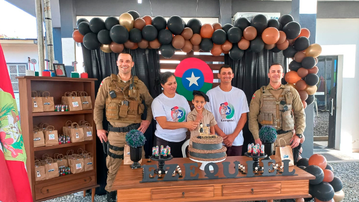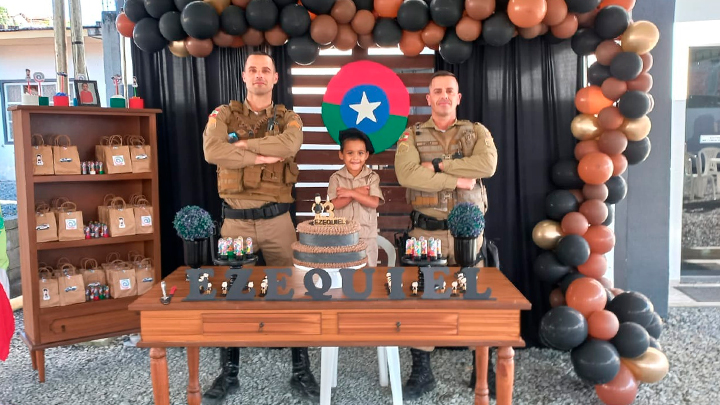 Policiais militares de São João Batista foram homenageados em um aniversário de uma criança de 3 anos no último sábado (11). A festa ocorreu no bairro Timbezinho.