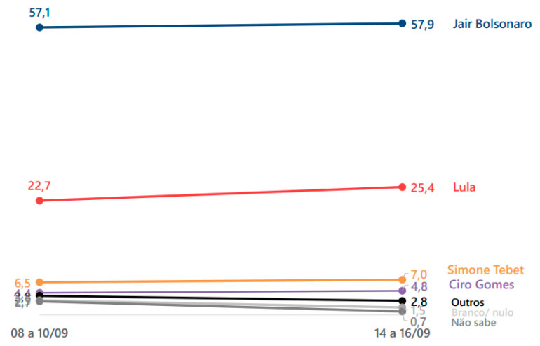A pesquisa tem margem de erro máxima de 2,8% e nível de confiança de 95%. Isso significa que a pesquisa retrata a realidade do intervalo de dias pesquisado com 95% de certeza.