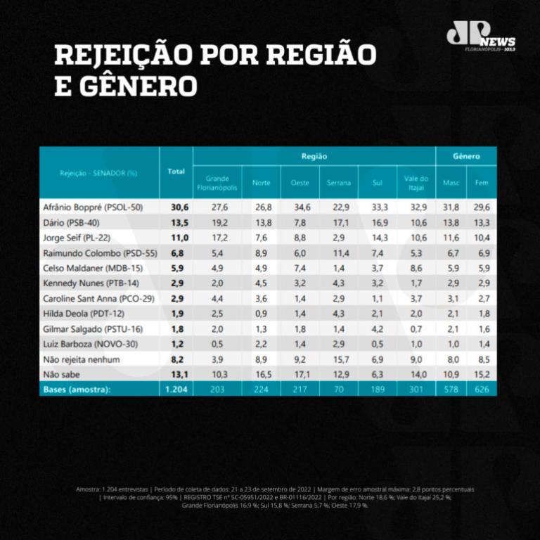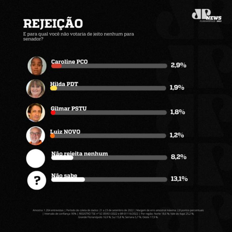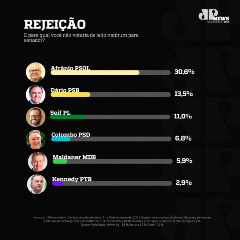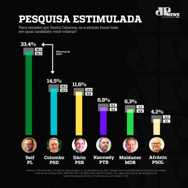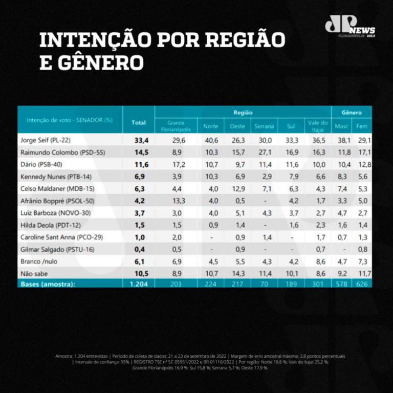 Pesquisa JP News/Mapa: intensões de voto ao senado em SC