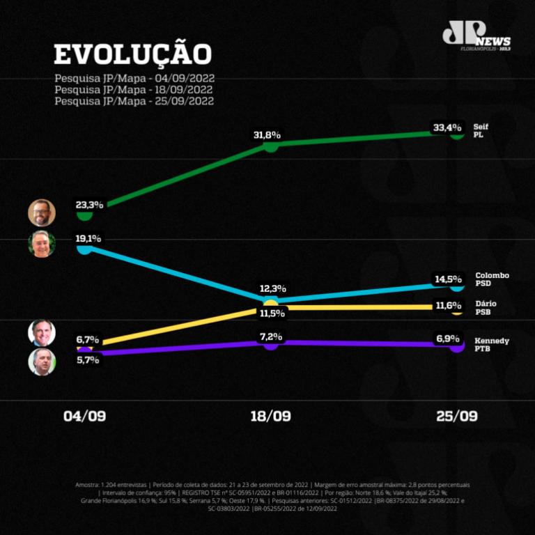Pesquisa JP News/Mapa: intensões de voto ao governo de SC
