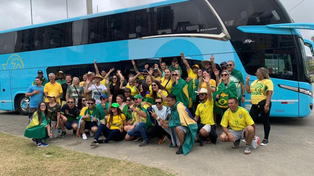 Somente da cidade de Itapema a programação era sair três coletivos com destino a capital do país. Em um desses ônibus está o patriota Tijucano Davi Florêncio que sempre usa nas manifestações uma bandeira de Israel.