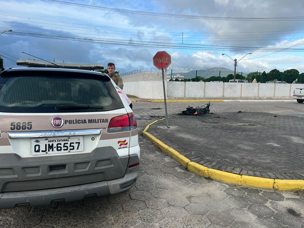 De acordo com relatório Policial, com o impacto da colisão, o motoqueiro foi arremessado e sua moto começou a pegar fogo.
