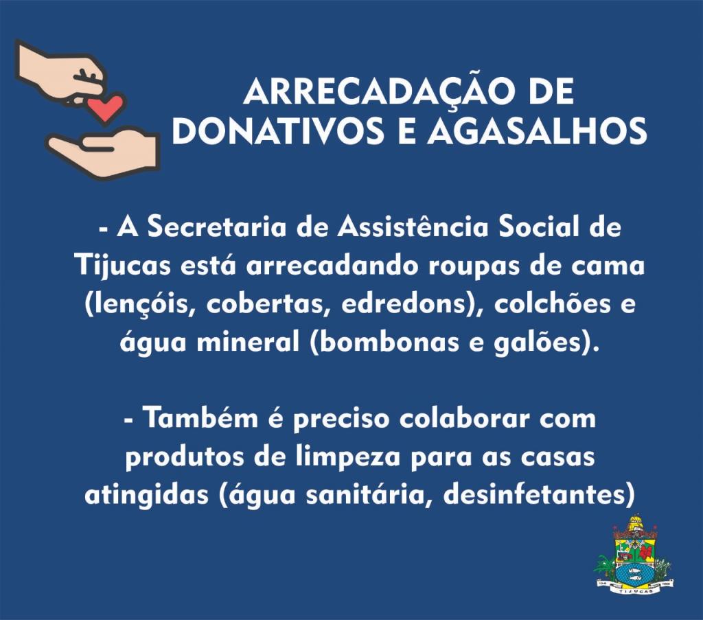 A Secretaria de Assistência Social de Tijucas, esta arrecadando roupas de cama ( lençóis, cobertas, adredons), colchões e água mineral ( bombas e galões).