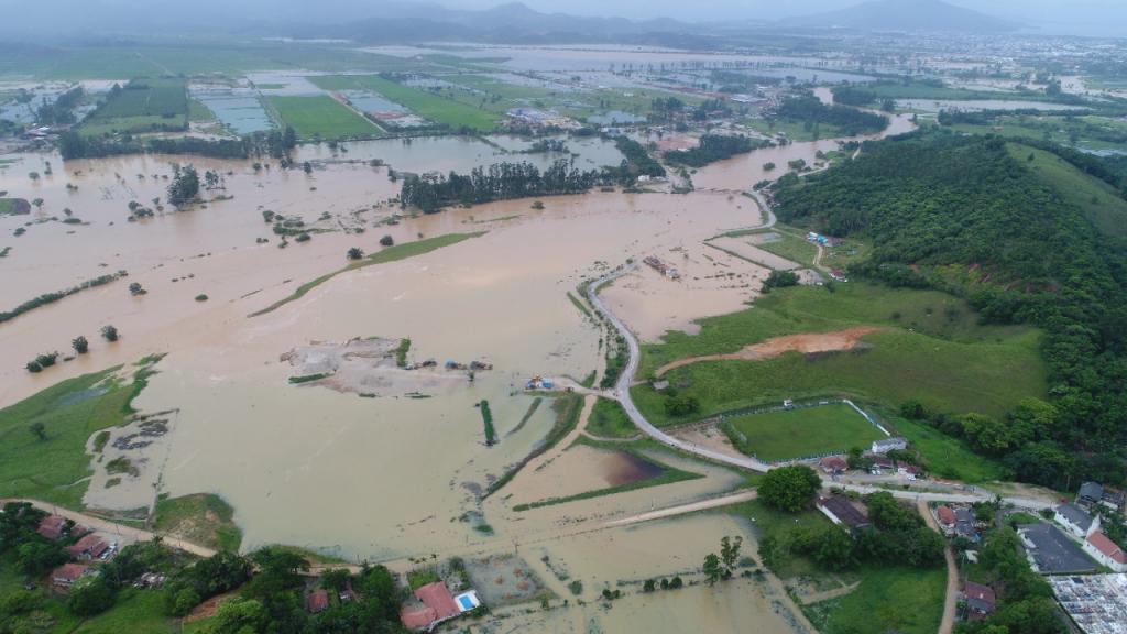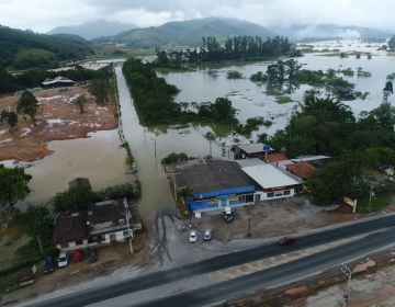 Em Tijucas, nesta sexta-feira (02/12) quatro pessoas ficam ilhadas, na Rua Coronel Buchelle, Centro da cidade.
