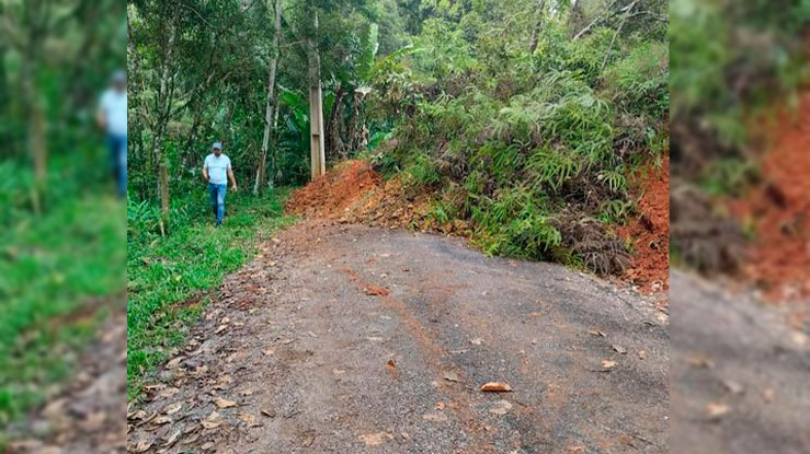 A estrada que liga Tijucas a Canelinha, pelas localidades de Oliveira e Moura, esta bloqueada por uma quedra de barreiras.