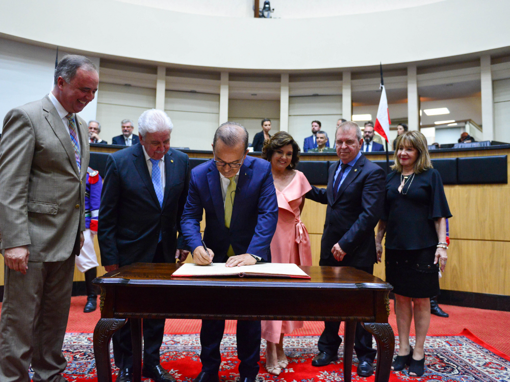 Jorginho e Marilisa Boehm, sua vice-governadora, foram empossados em cerimônia oficial durante sessão solene na Assembleia Legislativa de Santa Catarina (Alesc). O evento contou com m presença deputados estaduais, federais e autoridades dos três Poderes.