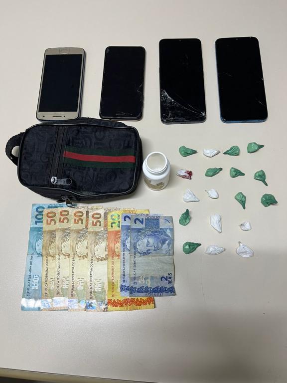 A PM afirma também que durante a perseguição atrás dos suspeitos, um deles entrou no banheiro e teria jogado uma pochete pela janela, sendo abordados. Na sequência o suspeito com as iniciais W. de O. S, vulgo “Mion”, 26 anos, saiu correndo da posição de abordagem para trás de casa.