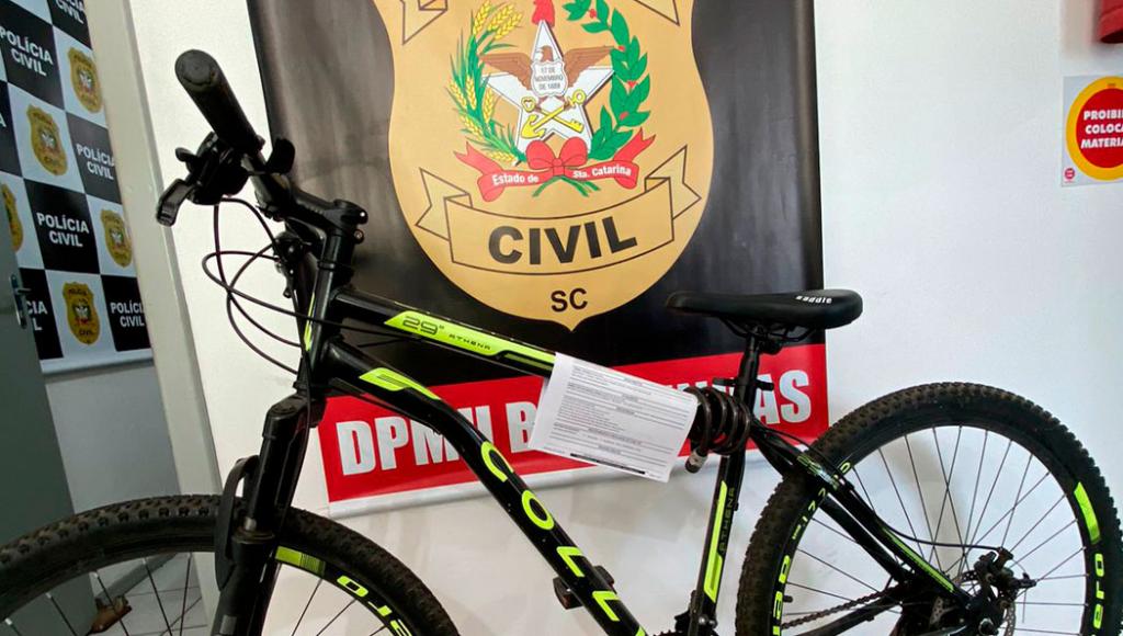 A Polícia Civil recuperou nesta quinta - feira (08), uma bicicleta preta, com escritas em verde fluorescente, modelo "ATHENA", marca COLLI, que se encontra na Delegacia de Polícia de Bombinhas. Em pesquisa aos boletins de ocorrência registrados, não foi encontrado o registro do furto.