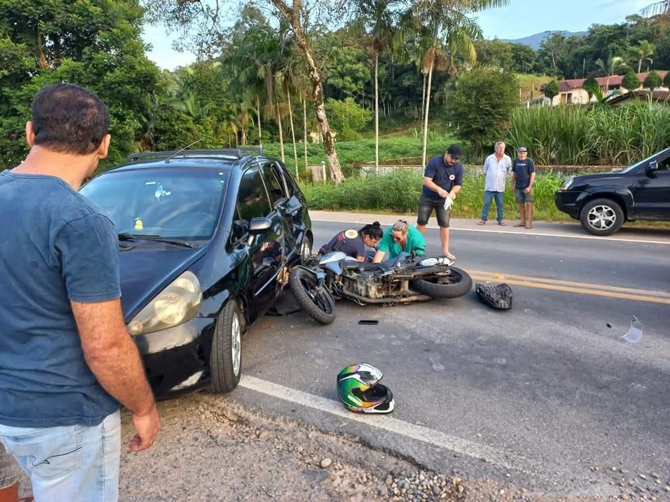 Um acidente envolvendo um carro e uma motocicleta, deixou uma pessoa gravemente ferida, na manha desta quarta-feira (29), em Nova Trento. A colisão entre os veículos, aconteceu na rodovia SC-410, no bairro Rio do Braço.