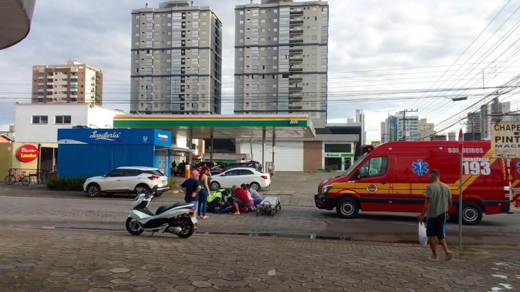 Uma mulher ficou ferida por volta das 07h52min desta sexta-feira (05), após sofrer uma queda de motocicleta. O acidente aconteceu na Avenida Hironildo Conceição dos Santos, no bairro Perequê, em Porto Belo.