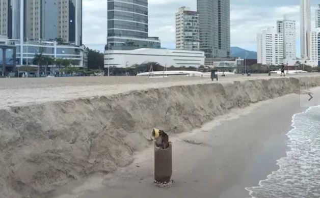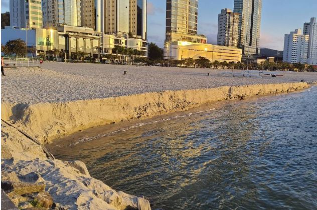 O trecho de faixa de areia próximo ao Parque Unipraias, recuou cerca de 70 metros, desde que os trabalhos de alargamento foi concluído. A situação já era esperada e está sendo monitorada, segundo o engenheiro civil e fiscal da obra, o ex-prefeito Rubens Spernau.