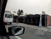 Um grave acidente ocorreu nesta manhã no km 149,6 da BR-101/SC, na cidade de Itapema, sentido Curitiba, deixando a faixa direita interditada. Um caminhão capotou na região conhecida como Morro do Boi, causando lentidão no tráfego, que está sendo desviado para a faixa esquerda. No momento, há uma fila de aproximadamente 1 km de extensão.