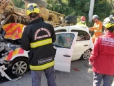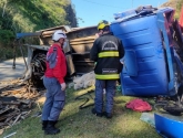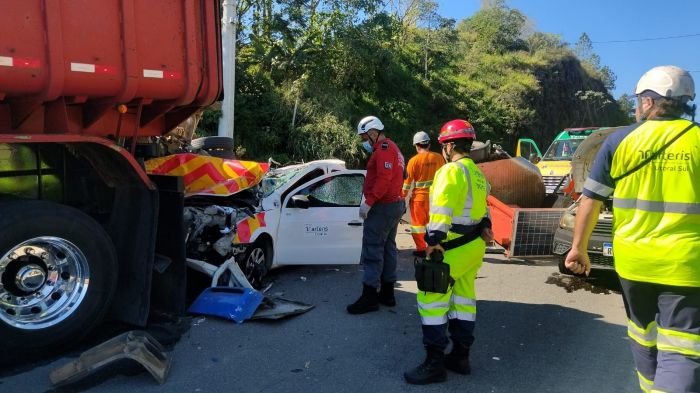Trabalhadores de uma empresa terceirizada da Arteris Litoral Sul, responsável pelas obras na rodovia, foram surpreendidos por uma carreta desgovernada, resultando em um acidente assustador.