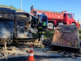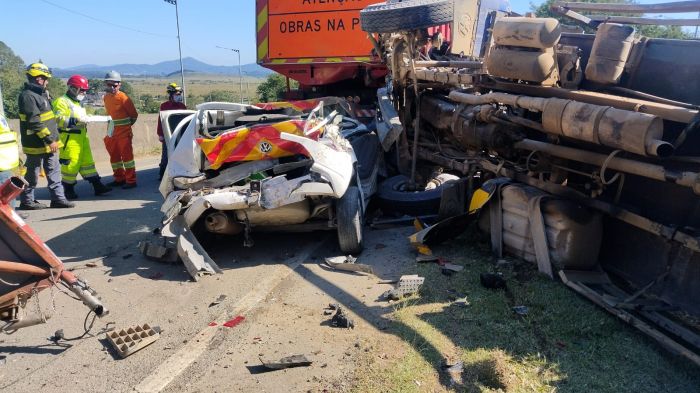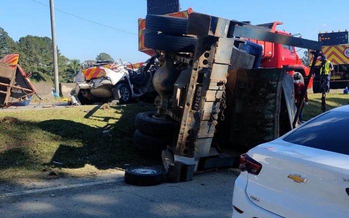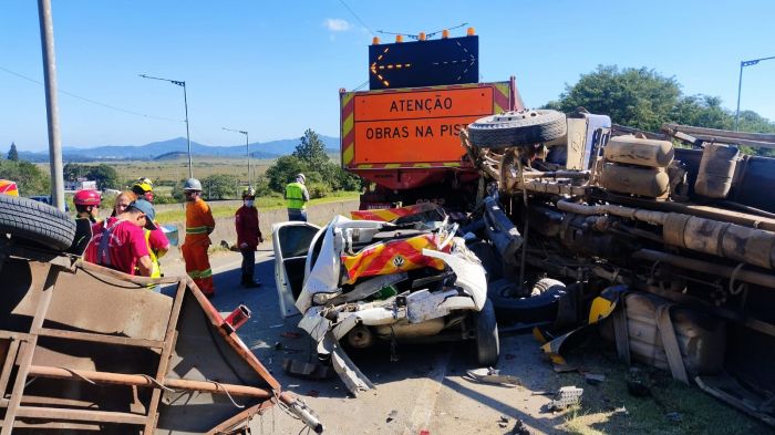 Enquanto os trabalhadores realizavam a sinalização na pista, os veículos em que estavam foram atingidos em cheio pela carreta, que acabou tombando. Apesar da violência do impacto, felizmente não foram registradas vítimas graves entre os trabalhadores envolvidos.