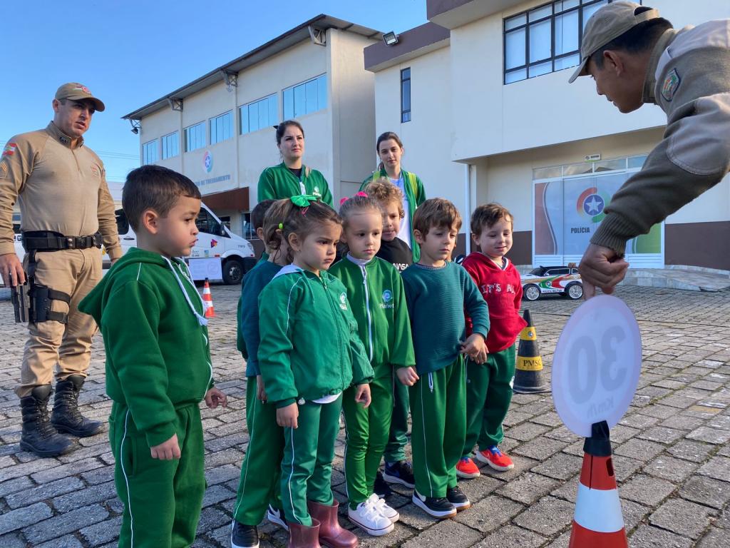 Na última sexta-feira (16/06), a Polícia Militar de Tijucas promoveu uma palestra educativa sobre trânsito voltada para crianças de 4 e 5 anos da Rede Municipal de Ensino. O evento ocorreu na 2ª Companhia de Polícia Militar e teve como objetivo conscientizar os pequenos sobre a importância da educação no trânsito e a responsabilidade que cada um tem ao circular pelas vias públicas.