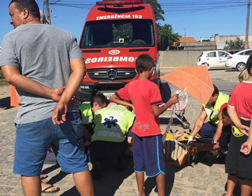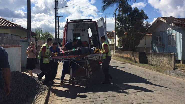 Uma equipe do Corpo de Bombeiros foi acionada e após realizar os primeiros procedimentos de socorros a vítima identificada como Valdir Geremias Alves, de 57 anos, foi conduzida ao Hospital São José com suspeitas de TCE (Traumatismo Craniano Encefálico).