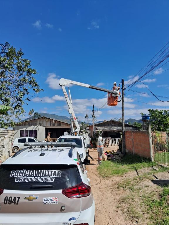 Diante dessa irregularidade, os policiais agiram prontamente e acionaram uma equipe da CELESC (Centrais Elétricas de Santa Catarina) para intervir no local. A equipe da CELESC chegou e realizou a desativação do sistema de ligação clandestina de energia, conhecido popularmente como "gato", que estava instalado na área de invasão. Cerca de 500 metros de cabos de energia foram recolhidos como parte da operação.
