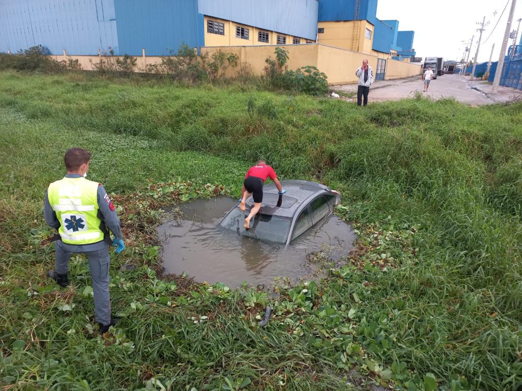Na manhã deste sábado (19/08), um fato chamou a atenção dos moradores de Tijucas. Por volta das 08h13, um acidente de trânsito ocorreu na rua Curió, na região da Praça, quando um veículo caiu em uma vala e ficou submerso na água.