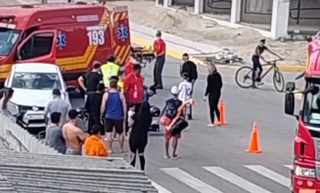 Um acidente de trânsito foi registrado na rua 462, no bairro Jardim Praia Mar, em Itapema, na tarde deste domingo (20/08). A colisão envolveu um carro modelo Gol e uma motocicleta, deixando um casal ferido.