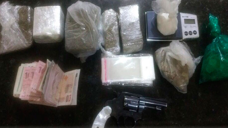 Durante a abordagem, os policiais encontraram dentro de um congelador no interior da lanchonete uma grande quantidade de maconha e um revólver calibre 32 municiado. No local também foi encontrado balança de precisão, rádio comunicadores, dinheiro, em real e dólar e folhas de coca in natura.