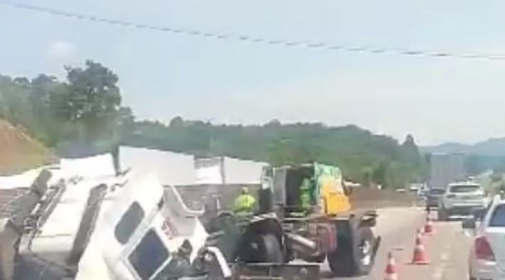 Até o momento, não há detalhes sobre feridos no acidente. A interdição da faixa de trânsito resulta em lentidão desde a ponte sobre o Rio Biguaçu até a região de Tijuquinhas. As autoridades competentes estão no local para lidar com a situação e fornecer assistência necessária.