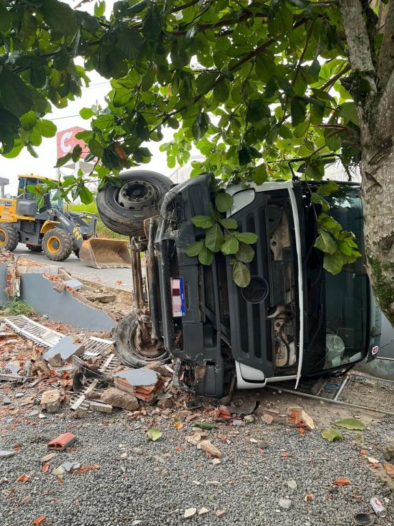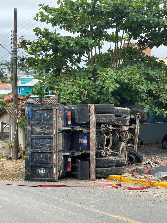 Segundo informações do condutor, o acidente ocorreu devido à perda dos freios durante a descida da Rua Ipiranga, resultando no tombamento lateral do veículo. Apesar da gravidade do ocorrido, o motorista não sofreu ferimentos.