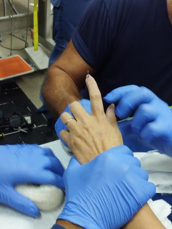 A costureira foi prontamente atendida e ficou aos cuidados da equipe médica do SAMU após a retirada.