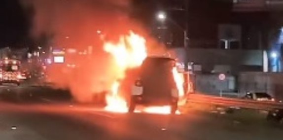 Na noite de sexta-feira (15), um carro pegou fogo na BR-101, em Palhoça. O Corpo de Bombeiros Militar de Santa Catarina (CBMSC) recebeu o chamado às 23h20 e prontamente se deslocou para o local. Ao chegar, encontraram o proprietário do veículo, um Jeep, que acompanhou a operação de combate ao incêndio.