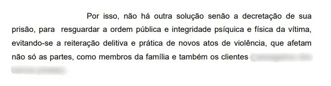 Após análise das justificativas apresentadas pelo réu, o Ministério Público concluiu que ele não está respeitando as medidas impostas pela Justiça e representa um risco para a ordem pública e a integridade física e psíquica da vítima. Por isso, o MP considera que a decretação da prisão preventiva é a única medida adequada para evitar a reiteração criminosa e proteger a sociedade.
