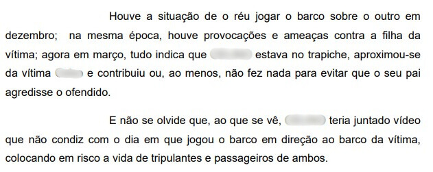 O ex-vereador é acusado de violar uma medida cautelar que o proibia de manter contato com a vítima, seus familiares e colaboradores. Os registros apontam que, apesar de ter sido intimado, o ex-vereador teria supostamente jogado um barco sobre o da vítima em dezembro de 2023, além de ameaçar a filha do ofendido em janeiro de 2024.