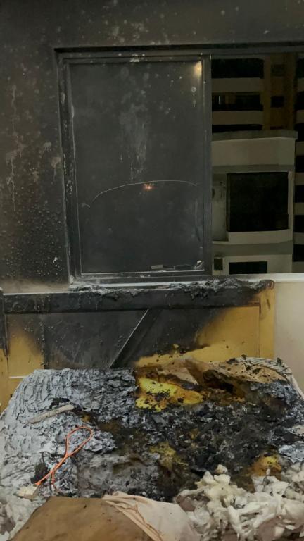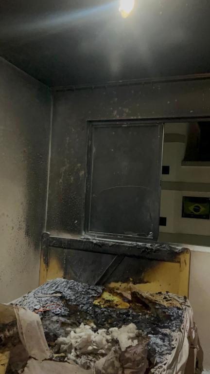 De acordo com relatos da moradora, o incêndio teve início devido a uma explosão do celular que estava carregando sobre a cama do quarto. As chamas se propagaram rapidamente para o colchão e as cortinas.
