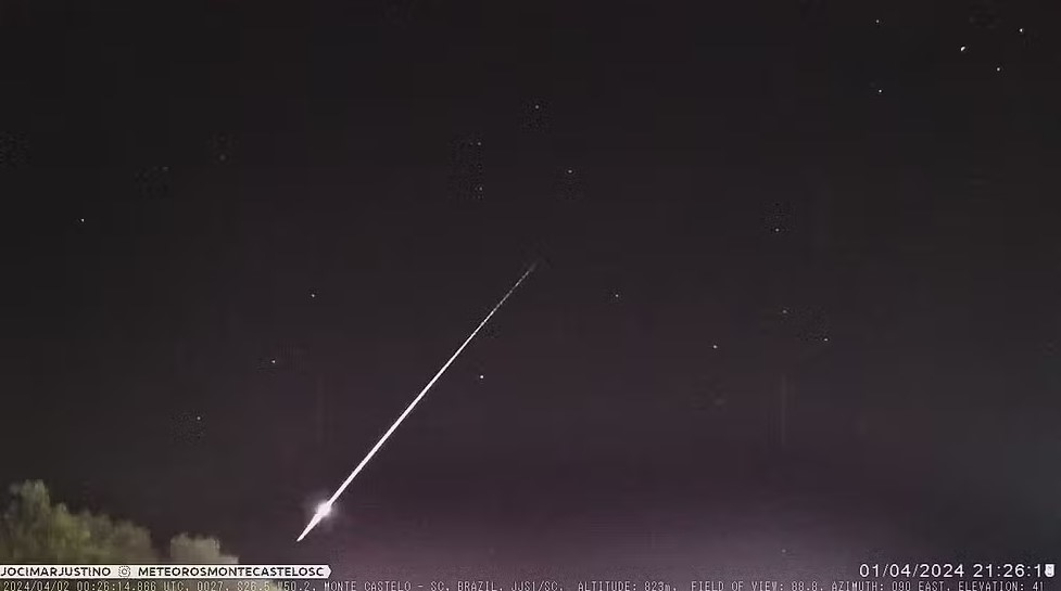 Um meteoro foi registrado no céu de Santa Catarina, capturado por uma câmera de monitoramento em Monte Castelo, no Norte do estado. O fenômeno, popularmente conhecido como "estrela cadente", durou cerca de 4 segundos e terminou com uma pequena explosão, indicando um aumento repentino de brilho no final de seu trajeto.