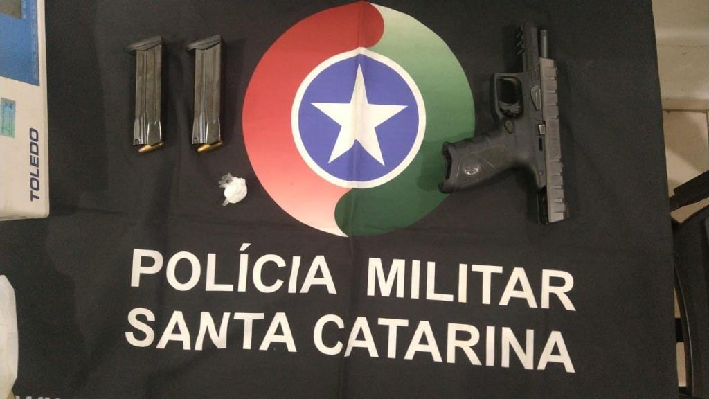 Ao chegarem ao local, a guarnição conversou com a vítima, que confirmou os fatos relatados. O agressor já havia deixado o local, mas retornou posteriormente com sua caminhonete. Durante revista veicular, foi encontrada uma arma de fogo municiada com dois carregadores, para a qual o agressor possuía porte, além de uma porção de cocaína no console do veículo.