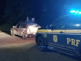 Policiais rodoviários federais motociclistas flagraram na noite desta quinta-feira (04/04), na BR-101 em Joinville, um VW/Gol transitando às escuras, em condições precárias de circulação.