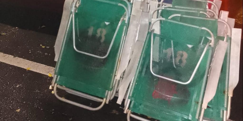 Ao abordarem os ocupantes, encontraram 16 cadeiras de praia e um alicate de corte dentro do veículo. Os abordados confessaram ter acabado de furtar as cadeiras na praia do Estaleiro. Os dois homens, de 36 e 46 anos, foram encaminhados à Delegacia de Polícia Civil para os procedimentos legais.