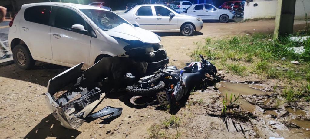 O condutor da moto ficou ferido, e a condutora do veículo fugiu do local sem prestar socorro.