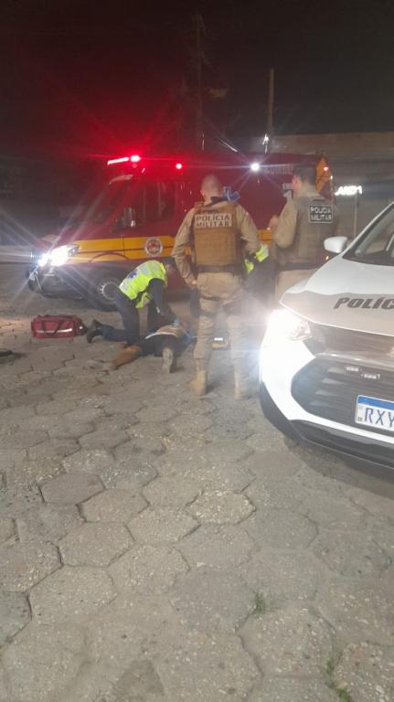 Um homem, ainda não identificado pelas autoridades, foi encontrado no estacionamento da rodoviária de Tijucas após ter sido alvejado por um tiro. Segundo relatos de testemunhas no local, o indivíduo apresentava um ferimento na região da costela e estava caminhando em direção ao hospital quando caiu no estacionamento. O homem não portava documentos.