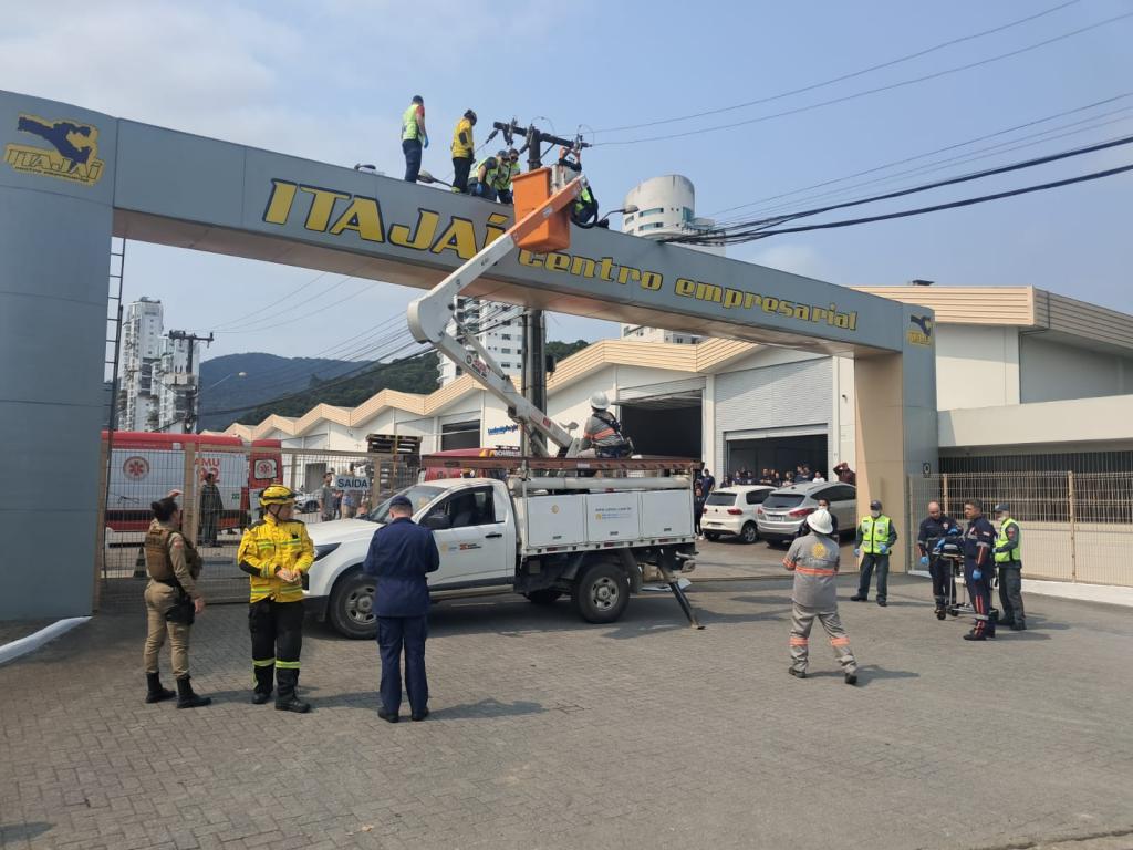 Na tarde desta terça-feira, 3, os bombeiros foram chamados para uma ocorrência na rua José Gall, em Itajaí, onde um homem sofreu um choque elétrico enquanto estava em um poste. Ao chegarem no local, os bombeiros constataram que o local ainda estava energizado, o que representava um risco adicional para a operação de resgate.