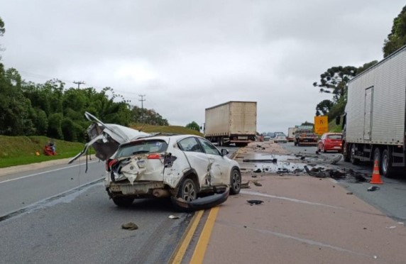 Um grave acidente na manhã de terça-feira (15) em Mafra, Santa Catarina, resultou na morte de uma motorista de 21 anos na BR-116, próximo ao km 15. O acidente, ocorrido por volta das 9h15, envolveu um Honda HRV, um Renault Duster, e três caminhões.