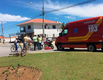 Motociclista é socorrida após ser atingida por veículo em rótula