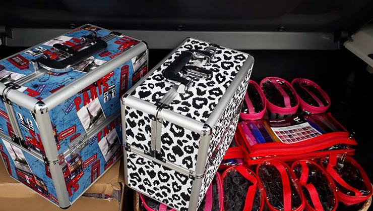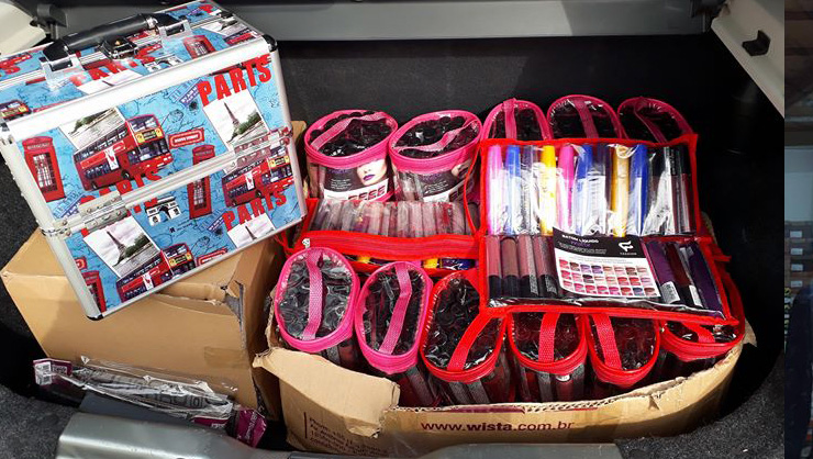 De acordo com relatos da própria vítima em uma rede social, do interior do veículo foram levados 12 kits de batom e rímel da marca fashion e 2 maletas com maquiagem.