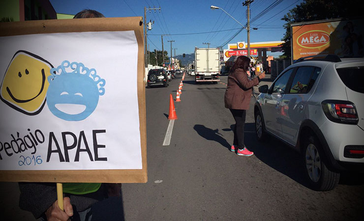 Um pedágio com fins beneficentes está sendo realizado nesse sábado (11), a, no sinaleiro no posto Chiquinho, no centro de Tijucas. O valor doado pelos motoristas e pedestres será destinado a Apae (Associação de Pais e Amigos dos Excepcionais).